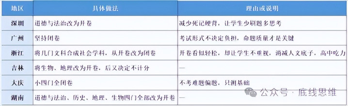部分地区的中考“小四门”开/闭卷局势