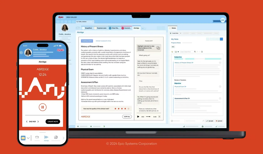 Abridge 作念的事情听起来绵薄:把医师和患者的对话录下来,自动生成病历条记。但推行难度在于,医疗对话的环境嘈杂、口音羼杂、医学术语和日常用语交汇,Abridge 的语音识别引擎特意为这类场景张望过。