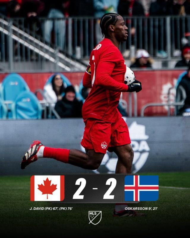 临了一场人的比赛,加拿大在多伦多2比2战平冰岛。