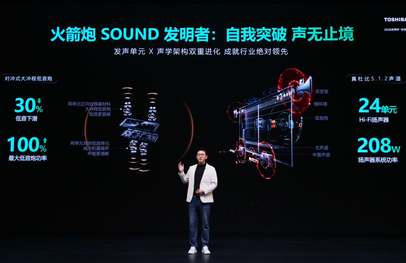 音质方面,东芝是行业内独一同期搭载颓靡画质与音质芯片的品牌。全系配备ZRα AI画质芯片与BRα/BR听觉感知芯片。REGZA ZX与Z700SF PRO搭载火箭炮SOUND Ultra,配备真杜比5.1.2声谈及行业始创的对冲式大冲程低音炮,通过加多反向低音单位中庸振动能量,低音下潜至35Hz,博亚体育app中国官网入口较前代素质30%,低音炮最大功率达80W,素质100%。