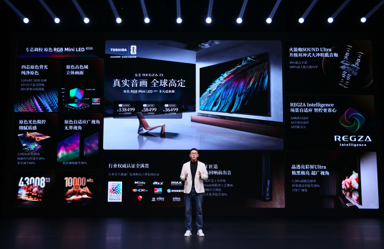 网科技讯 3月26日,东芝电视发布REGZA ZX系列、700系列与600系列新品,全系搭载原色RGB Mini LED时刻及音画双芯架构。这次发布恰逢REGZA品牌创立20周年。