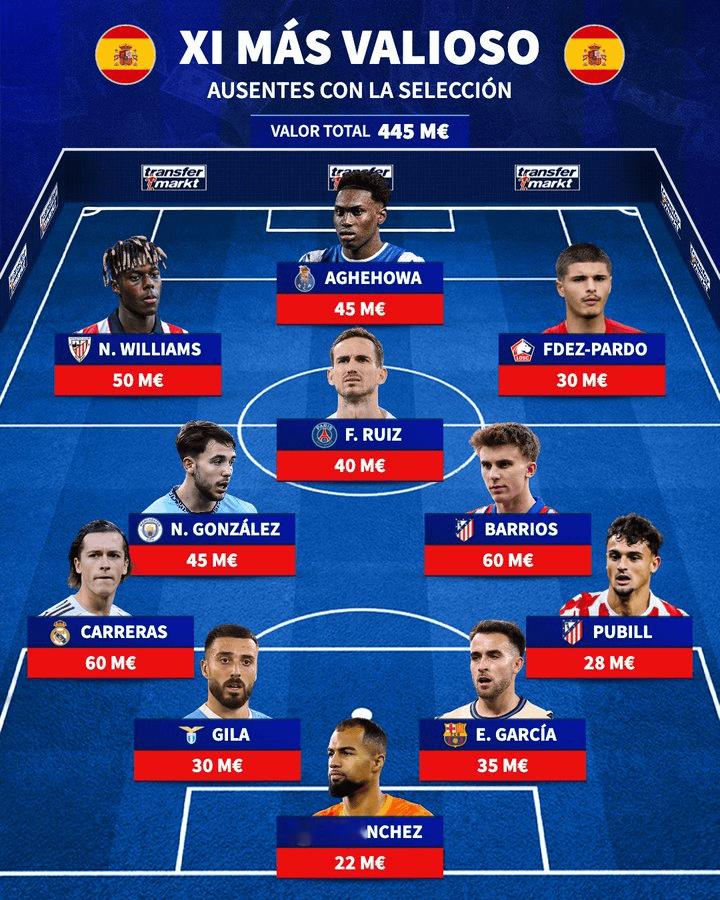 虎扑03月30日讯德国转会市集盘货了缺席本期西班牙集训名单的球员,博亚体育app中国官网入口并按照身价摆设出了一套最贵声势。
