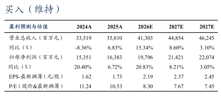 盈利预测与投资评级:咱们小幅调养此前盈利预测,瞻望公司2026/2027年归母净利润差异为198/214亿元(前值201/210亿元),瞻望2028年归母净利润为221亿元,差异同比增长21%/8%/3%。面前市值对应2026-28年PB估值差异为0.74/0.69/0.65倍。保管“买入”评级。