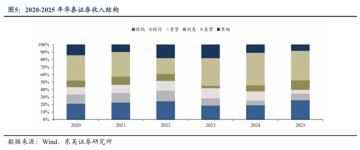 事件:华泰证券发布2025年年报,公司2025年已毕贸易收入358.1亿元,同比+6.8%;归母净利润163.8亿元,同比+6.7%;对应EPS1.73元,ROE9.2%,同比捏平。第四季度已毕贸易收入86.8亿元,同比-7.8%,环比-20.4%;归母净利润36.5亿元,同比+29.0%,环比-29.6%。2024年三季度公司出售Assetmark已毕62.29亿元投资收益,若剔除该终点常性收益,2025年贸易收入同比增长31%,净利润同比增长80%。公司出售Assetmark后,国外业务收入有所下滑,2025年公司国外业务收入占比约17%(2024年约35%),仍孝顺较高收入。
